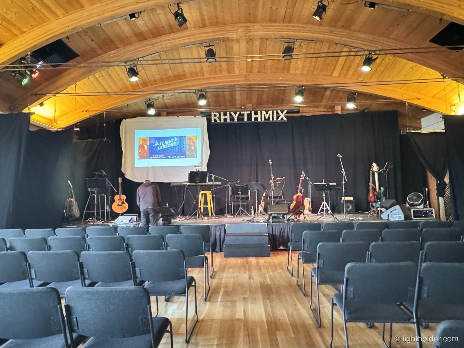 It had been a long time since I was part of a theatrical cast, and it felt good to be in the anticipatory space of a green room, watching folks grab a bite to eat, wrestle with their nerves, apply makeup, tune instruments. I was able to snap a few quick photos of the cast during sound check, there was time to grab a bite to eat, and then it was curtain!
